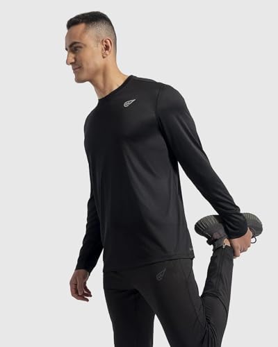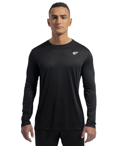 Generic - تيشرت رياضي بأكمام طويلة من قماش سريع الجفاف بتصميم يبرز العضلات، أسود