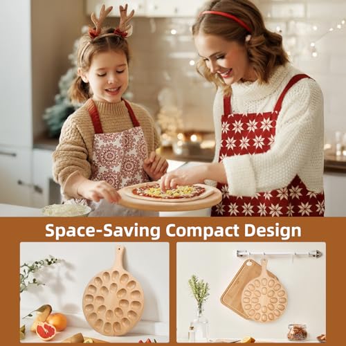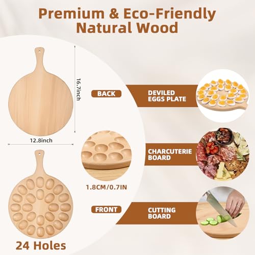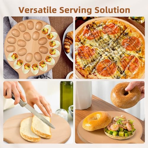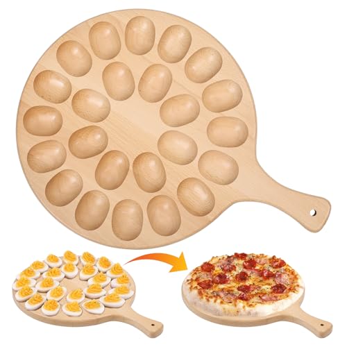 Athlvig - طبق بيض شيطاني قابل للعكس من اثلفيج، لوح تشاركوتيري دائري خشبي، صينية تقديم بيض 24 فتحة مع مقابض للتشاركوتيري والبيتزا والعطلات القابلة للدهن