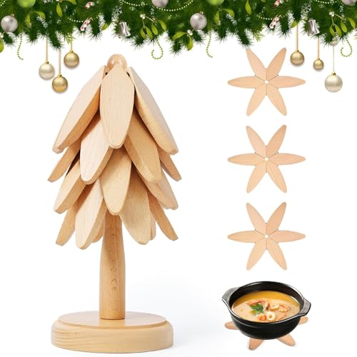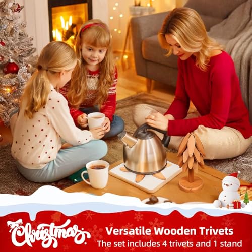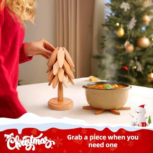 Athlvig - حوامل خشبية للاطباق الساخنة من اثلفيج، مجموعة من 4 حوامل للاواني الساخنة والمقالي مقاومة للحرارة وسهلة التنظيف، قواعد اكواب غير قابلة للانزلاق للمطبخ وغرفة الطعام، ديكور مطبخ الكريسماس