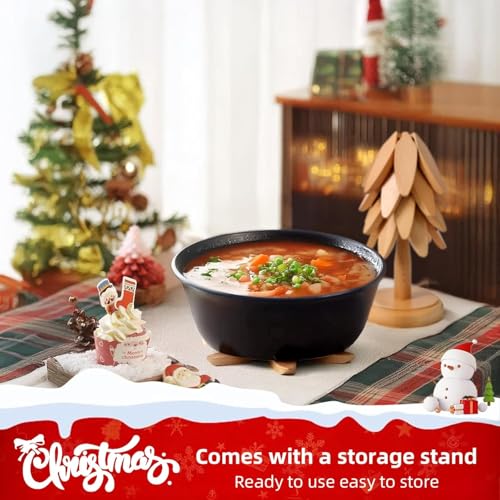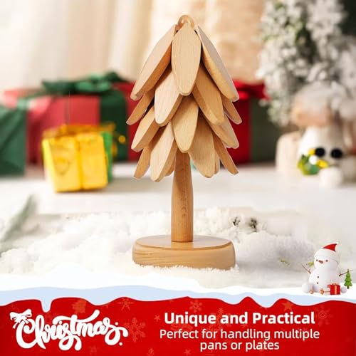 - تصميم عصري عملي ورائع: مصنوعة من خشب الزان، هذه المجموعة المكونة من 4 دعامات متينة وسلسة، وتقوم بعمل ممتاز لحماية أسطح الطاولات من الأطباق الساخنة. عند تكديسها بأناقة على الحامل، فإنها تشكل شجرة كريسماس صغيرة لطيفة، مما يضيف لمسة مريحة وريفية إلى المطبخ. مثالية لأي شخص يحب مزيجًا من الديكور والعملية