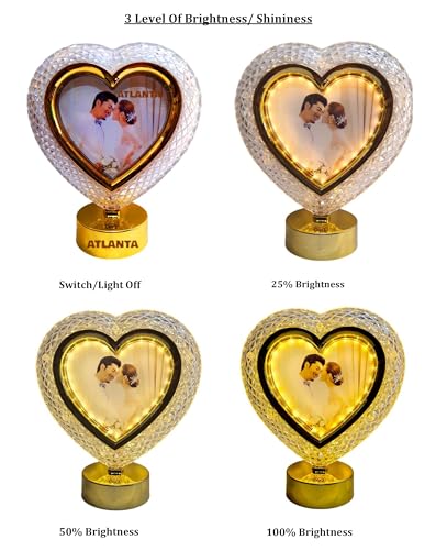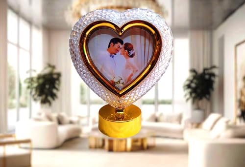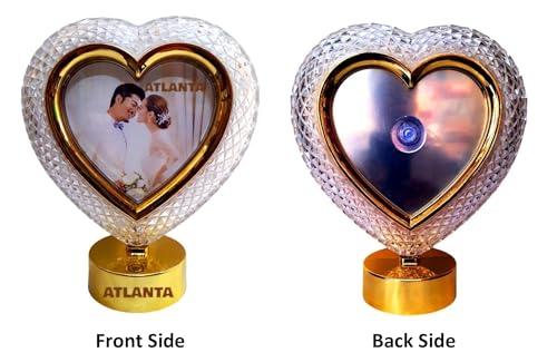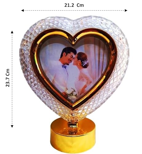 Generic - برواز صور كريستالي بتصميم قلب ذهبي مع زر إضاءة ليد يعمل باللمس من اتلانتا