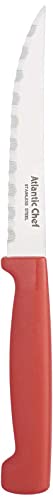 Atlantic Chef - سكينة ستانلس ستيل بمقبض بلاستيك من اتلانتيك شيف، 22.5 سم - احمر وفضي