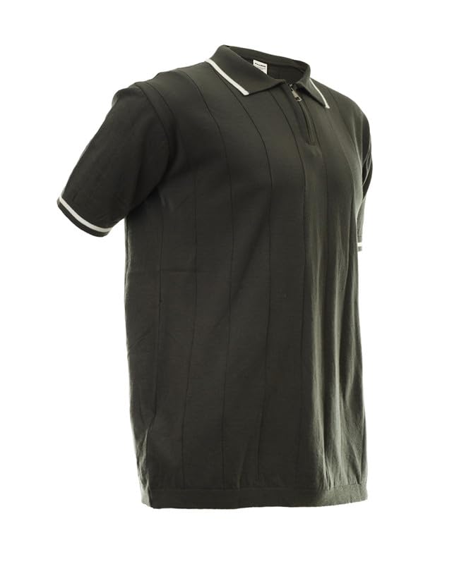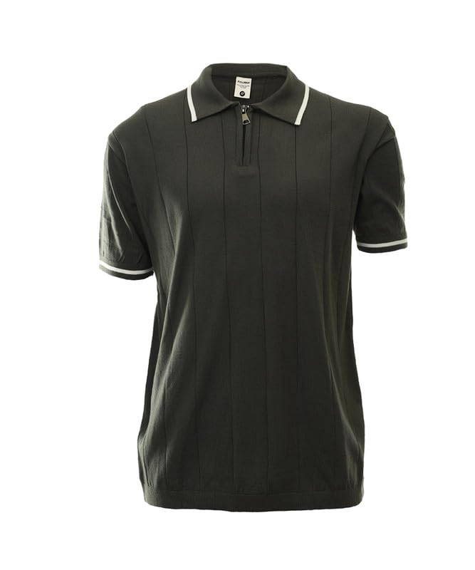 A TO H - تيشرت قطن تريكو بقصة ضيقة ورقبة بولو نصف سوستة واكمام قصيرة للرجال من اتوه - ATOH-001-P
