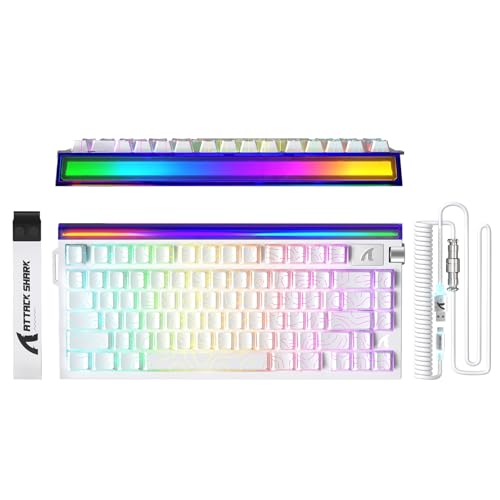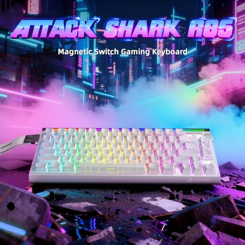 ATTACK SHARK - كيبورد العاب بسلك 75% من اتاك شارك R85 HE مع كيبل C01ULTRA LED، مفتاح مغناطيسي، 5 طبقات، برنامج متعدد الوظائف، صندوق اضاءة RGB، مقبض، 8000 هرتز، تقنية ار تي 0.005 ملم (ابيض)