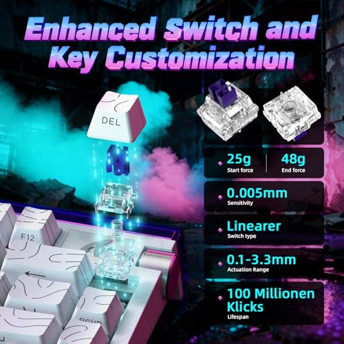 - 【دعم مفتاح مغناطيسي قابل للتبديل السريع】يمكنك بسهولة تبديل أو مزج المفاتيح المغناطيسية عالية الأداء مع دعم كامل للتبديل السريع. يمكن ضبط كل مفتاح بشكل فردي عبر برنامج لتحقيق منحنى تشغيل مخصص، ومع مجموعات مفاتيح ايه بي ايه، ستشعر بدقة واستجابة لا مثيل لها.