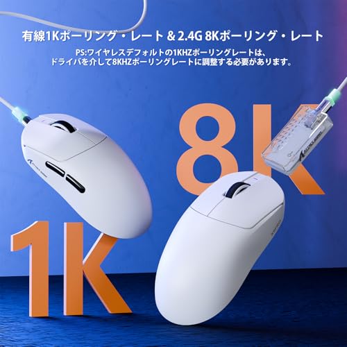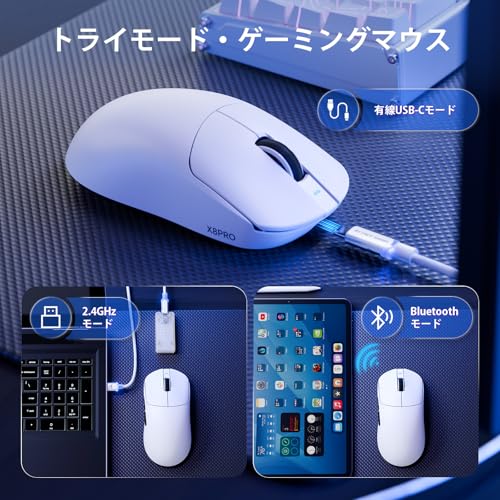 ATTACK SHARK - ماوس ألعاب كبيرة شارك X8 برو 8000 هرتز ربط بالموبايل والكمبيوتر سلكيًا ولاسلكيًا بالبلوتوث بوزن خفيف ومستشعر بيكسارت 3395 برو دقة 40000 نقطة لكل بوصة وتسارع 60G وبرنامج تشغيل ويب من اتاك، 55 جم ± 5