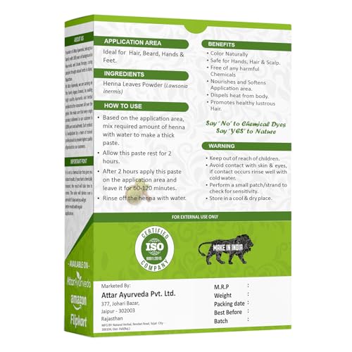 ATTAR AYURVEDA - مسحوق حناء طبيعي للون الشعر ونموه يقلل من تساقط الشعر طبيعي 100% بدون إضافة مواد حافظة وبدون إضافة صبغة كيميائية من عطار ايورفيدا 200 جم