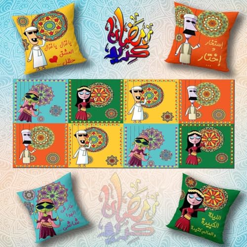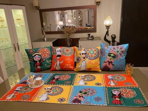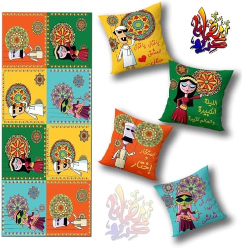 Generic - طقم كوشنز ورانر بتصاميم عربية جذابة – لمسة فنية لديكور رمضاني أصيل ، (4) كوشنز مقاس 40 سم * 40 سم ،(1) رانر مقاس 145 سم* 55 سم. (2, مستطيل)