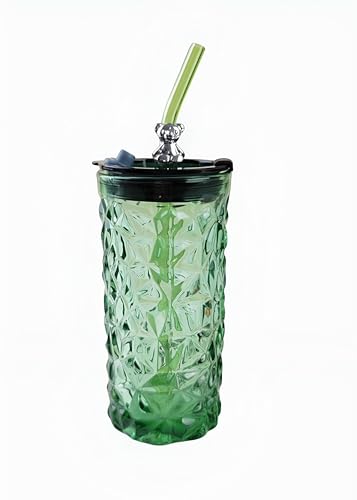 Generic - كوب زجاجي جذاب مزود بقشة للاستمتاع بالحليب والعصير والماء - زجاجة إبداعية عالية الجودة مثالية للمنزل والمكتب والشرب أثناء التنقل (الاخضر)