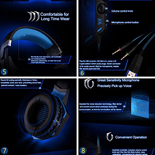 - 【تصميم فريد】تم تصميم مصابيح LED الساطعة على أغطية الأذن والميكروفون، مما يبرز جو اللعبة. سلك مضفر، شد متين يقلل بشكل فعال من المقاومة الخارجية؛ رباط كابل فيلكرو، يمنع التواء الخط. الخط مجهز بوحدة تحكم دوارة في مستوى الصوت، مفتاح واحد لكتم صوت الميكروفون، أكثر ملاءمة للاستخدام.