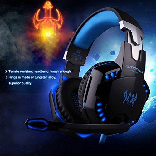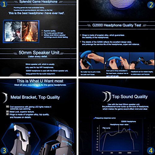 ATUTEN - سماعة راس للالعاب بميكروفون مع ميكروفون LED ستيريو 3.5 ملم G2000 لالعاب الكمبيوتر خاصية الغاء الضوضاء والتحكم في مستوى الصوت من اتوتين سلكي فوق الأذن أزرق داكن