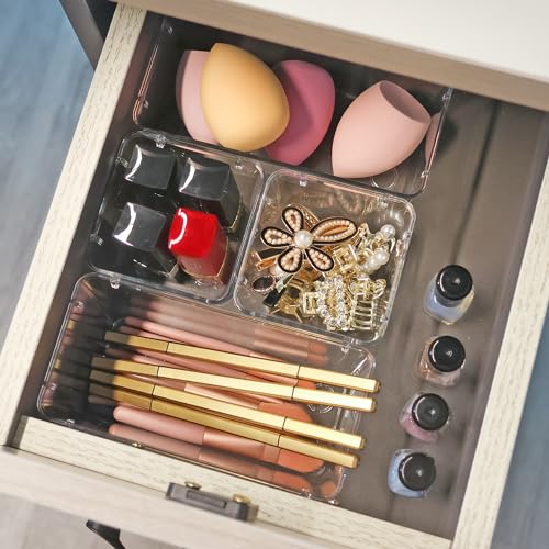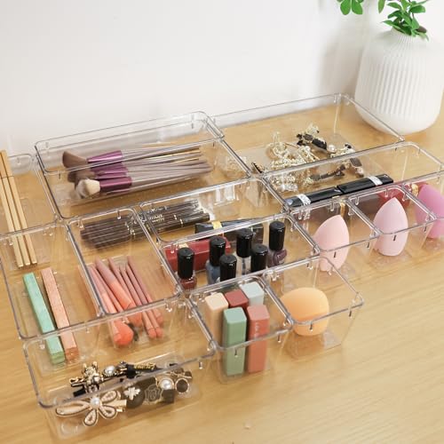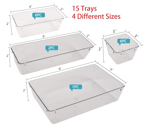 ATVAX - منظم أدراج من ATVAX، بتصميم بسيط، شفاف، مصنوع من البلاستيك، مقاوم للانزلاق، مجموعة من 15 قطعة لتنظيم المكتب