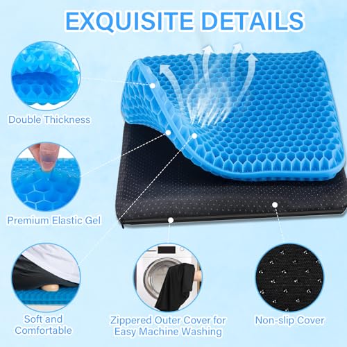 - 【سميكة وناعمة】مخدة كرسي المكتب سميكة خصيصًا بسُمك 3.5 سم، وهي أكثر سمكًا من معظم مخدات الجل الأخرى وسميكة بما يكفي لتحرير ضغط الكرسي على جسمك بشكل مثالي. تتكون مخدة الجل من آلاف الأعمدة الهوائية الناعمة للغاية وجيدة التهوية، مما يحول مقعدك الصلب إلى وسادة كرسي جل أكثر نعومة وراحة.