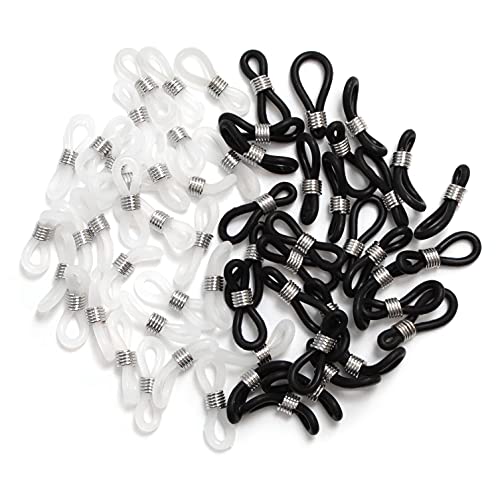AUEAR - AUEAR ، 60 حزمة من نهايات سلسلة النظارات القابلة للتعديل المضادة للانزلاق ذات الأطراف المطاطية وحامل موصل التجنيب، أسود وأبيض