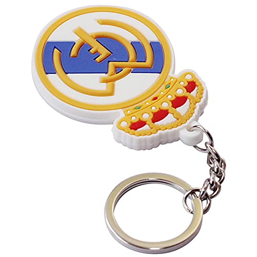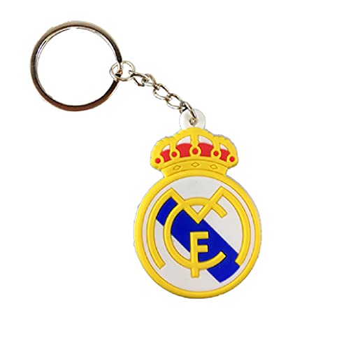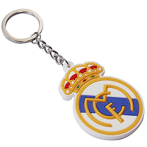 AUGEN - سلسلة مفاتيح مطاطية فاخرة مزدوجة الجوانب مع حلقة مفاتيح مضادة للصدا للسيارة والدراجة من اوجين، بنمط كرة القدم, ريال مدريد، من جوي روم، مطاط سيليكون