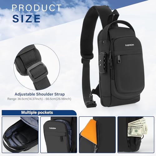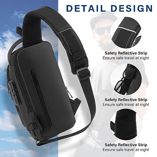 Augot - شنطة كروس مضادة للسرقة للرجال من اوجوت للكتف مقاومة للماء صدر وكتف مع منفذ شاحن USB للسفر والمشي لمسافات طويلة وركوب الدراجات لون أسود