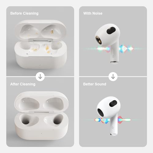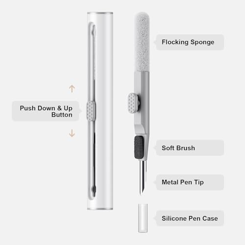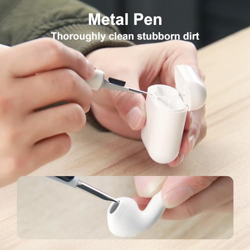Auhope - مجموعة تنظيف لسماعات ايربودز برو 1 2 3 من اوهوب، مجموعة تنظيف مع فرشاة ناعمة واداة اسفنجية متدفقة لسماعات الاذن البلوتوث وحافظة الشحن والجوال والكاميرا واللابتوب، ابيض