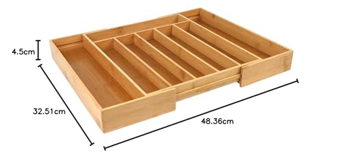 - حافظ على أدراج مطبخك أنيقة ومرتبة مع منظم الخيزران هذا الذي يخزن أدوات المائدة والأواني بكفاءة.