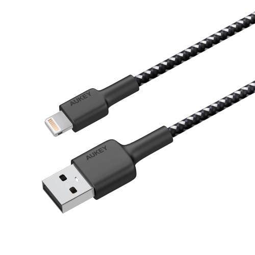 AUKEY - كابل لايتنينج مضفر للشحن والمزامنة من اوكي موديل CB-BaL3 بطول 1.2 متر، لون اسود