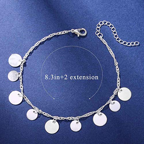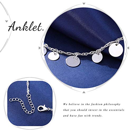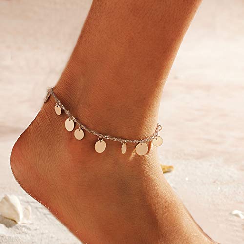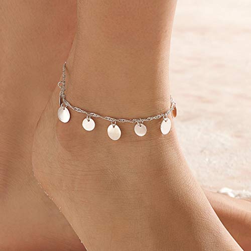 Aukmla - اساور كاحل بوهو مزينة بالترتر وسلسلة على شكل عملة معدنية للنساء والفتيات (فضي)
