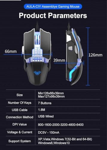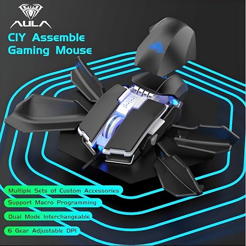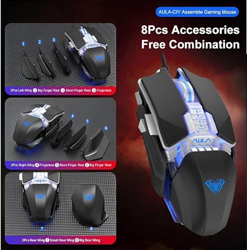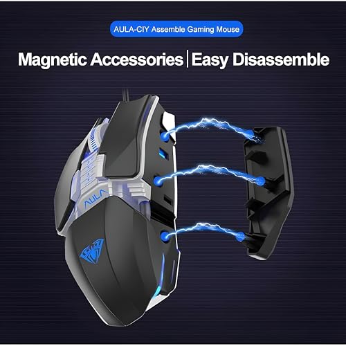 Generic - ماوس ألعاب AULA H508، تصميم مغناطيسي قابل للتعديل، ٧ أزرار قابلة للبرمجة، ٦٤٠٠ DPI، إضاءة خلفية متعددة الألوان