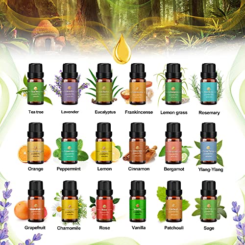 Aulaya - زيوت عطرية بخلاصة شجرة الشاي واللافندر والاوكالبتوس واللبان وعشب الليمون وإكليل الجبل والورد والمريمية واليلانج وقرفة والبرغموت والجريب فروت والبابونج، تستخدم في موزع روائح من اولايا، 18 قطعة × 10 مل