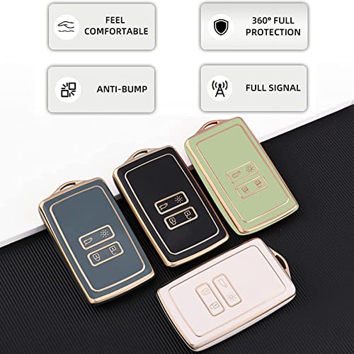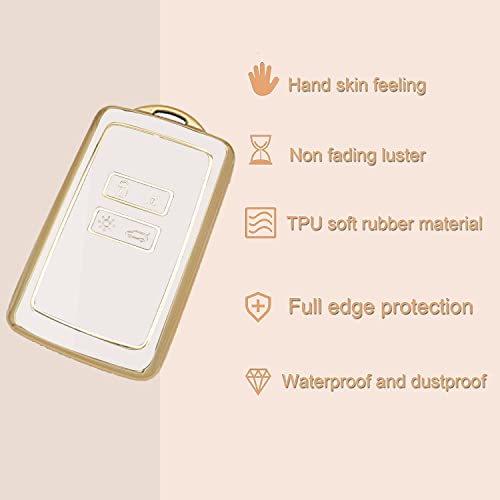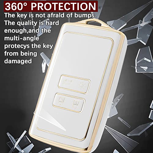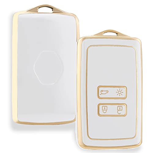 AULESSE - غطاء حماية من البولي يوريثين الحراري بحواف ذهبية بالكامل لمفتاح التحكم عن بعد لسيارة رينو كابتور ميجان تاليسمان اسباس كليو زوي كوليوس سينيك 4 اركانا داسيا سانديرو ايولس أبيض
