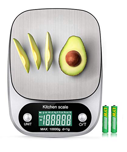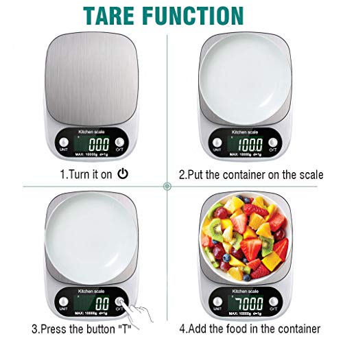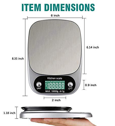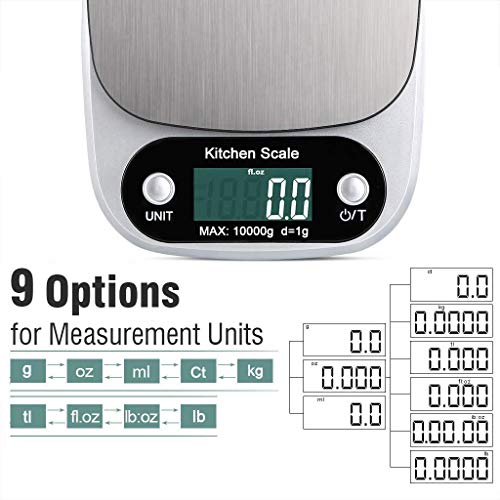 - 【سعة 22 رطل و9 وحدات قياس】---يمكن لميزان المطبخ هذا أن يزن الطعام حتى 22 رطل (10 كيلوجرام) وهو حساس لزيادات صغيرة تصل إلى 0.1 اونصة/1 جرام. يقوم زر الوحدة بتحويل 9 أوضاع وزن مختلفة: جرام/اونصة/مل/قيراط/كيلوجرام/تيل/اونصة سائلة/رطل:اونصة/رطل. مثالي لوزن الأشياء مثل الفواكه والخضروات واللحوم واللبن والماء والقهوة والشاي ومطابقة الوجبات والأدوات المعدنية وحتى المجوهرات وما إلى ذلك. فهو مثالي للخبز والاستخدام في الطبخ. يلبي حاجتك لوزن الأشياء المختلفة.