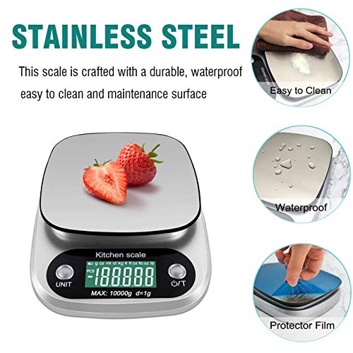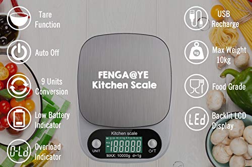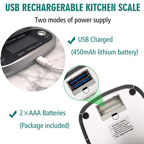AUNHUIT - ميزان مطبخ رقمي قابل لإعادة الشحن بمنفذ USB وبطاريات متعدد الوظائف مقاوم للماء وزن حتى 10 كيلوجرام بدقة 1 جرام وظيفة الوزن الصافي جرام/اونصة/مل/كيلوجرام/لتر/اونصة سائلة/ رطل لوزن الطعام من اون ويت