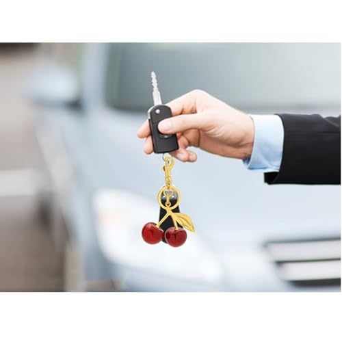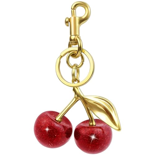 Auony - اي يو او ان واي تعليقة حقيبة الكرز اللامعة مع سلسلة مفاتيح مع حلقة مفاتيح ومشبك للمحافظ والشنط