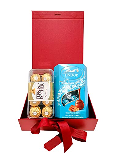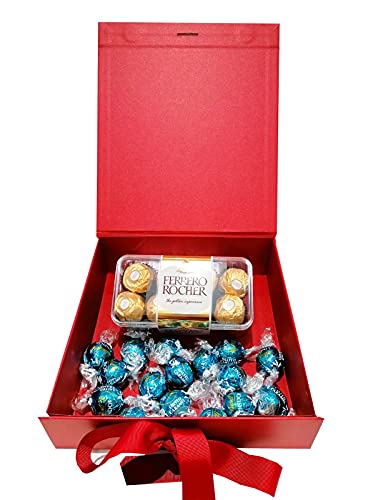 Auris Glocal Trading - علبة تقديم تحتوي على 200 جم من شوكولاتة ليندور و200 جرم من شوكولاتة فيريرو روشيه، لجميع المناسبات مثل عيد الأب وعيد ميلاد والتمنيات بالشفاء والتهاني أو الذكرى السنوية من ايرس بلو للأم والأب