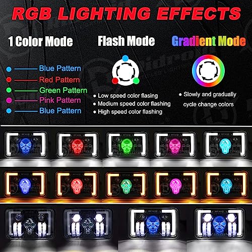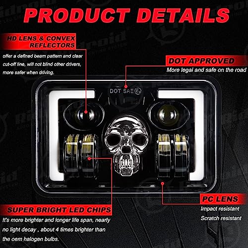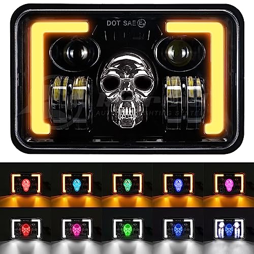 auronto - مصابيح امامية LED مستطيلة 4 × 6 انش من اورونتو بتصميم جمجمة DRL انعطاف سينجال عالية ومنخفضة متوافقة مع سوزوكي DRZ400SM DRZ400S DRZ250 طقم استبدال مصباح امامي LED H4651 H4652