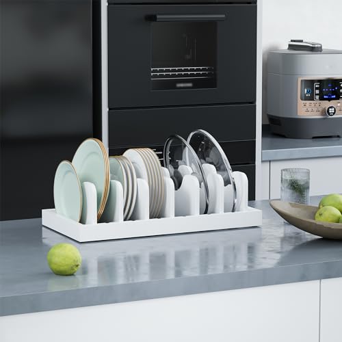 Auroral Zone - منظم اغطية الاواني من الخيزران اورورال زون حامل للخزانة الداخلية او أسطح المطبخ للادراج لاغطية والمقالي وألواح التقطيع واطباق العشاء ابيض
