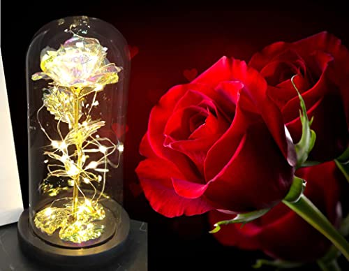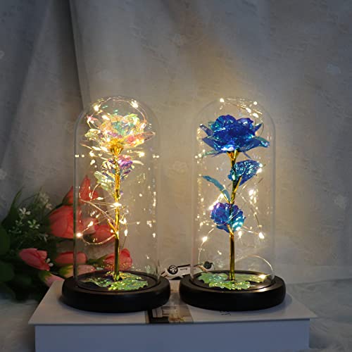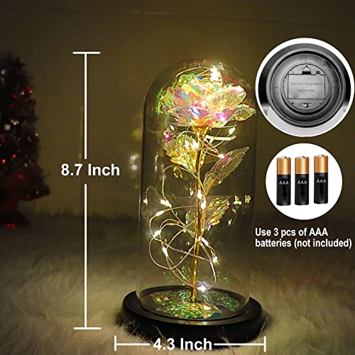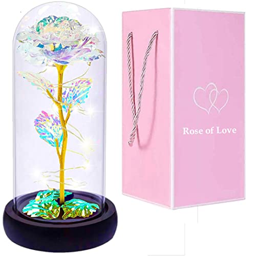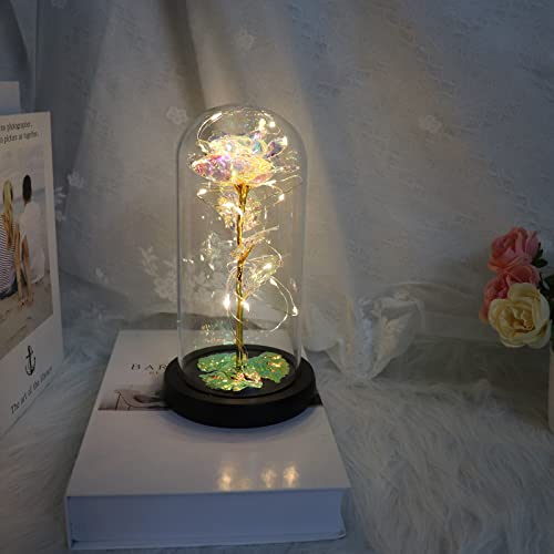 AUSAYE - هدية للنساء ، هدايا عيد ميلاد وردة صناعية ملونة مع سلسلة اضاءة LED على شكل كريستال ابدية داخل قبة زجاجية فريدة للام والتخرج والكريسماس من اوساي