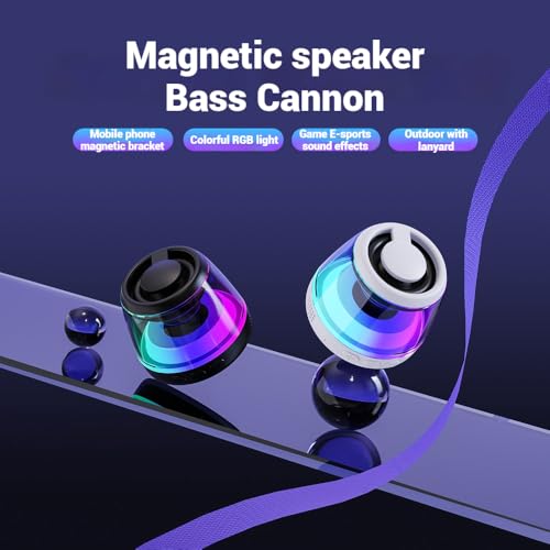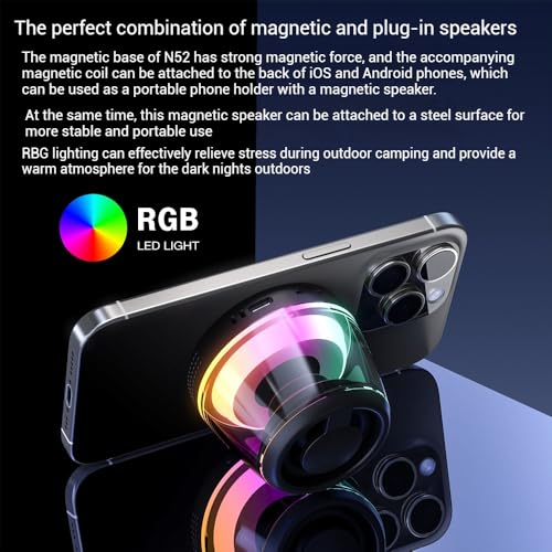 Ausbilew - مكبر صوت بلوتوث مغناطيسي خارجي من اوسبيلو بإضاءة ار جي بي بنمط اتصال TWS ودعم بطاقة ذاكرة بزمن تشغيل 10 ساعات بتصميم محمول مع حامل موبايل متوافق مع iOS بقدرة 5 وات