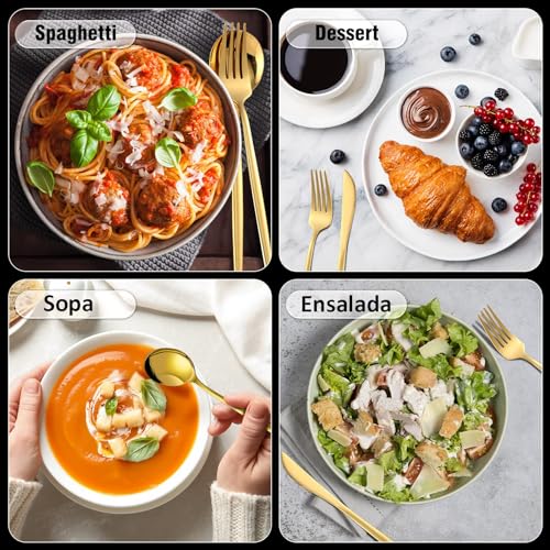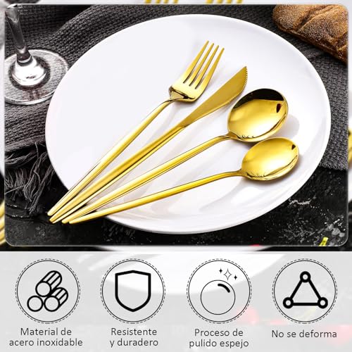 Ausein - أدوات مائدة 24 قطعة من الفولاذ المقاوم للصدأ تكفي 6 اشخاص تتضمن سكاكين وشوك ومعالق، أدوات مائدة للمطبخ والمطعم آمنة للاستخدام في غسالة الصحون من اوسين (ذهبي)