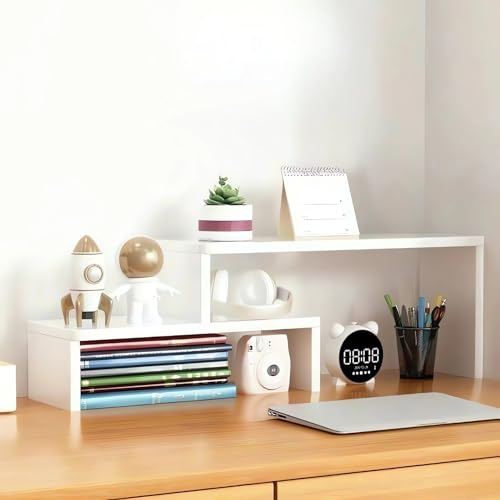 AUSHOPLAH - رف منظم للمكتب من اوشوبلاه، رف تخزين مكتبي، خزانة كتب خشبية، خزانة كتب خشبية، E68 (ابيض، 60 × 12 × 24 سم)
