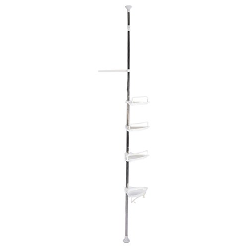 - [متين وموفر للمساحة] مصنوع من أنابيب من الستانلس ستيل وبلاستيك البولي بروبيلين، تم تصميم رف الحمام التلسكوبي هذا ليدوم طويلاً. يسمح القضيب القابل للتعديل بسهولة التركيب على الأسقف بين 105 و229 سم. يتناسب تصميمه الصغير بشكل مثالي مع زاوية حمامك، مما يوفر مساحة قيمة.