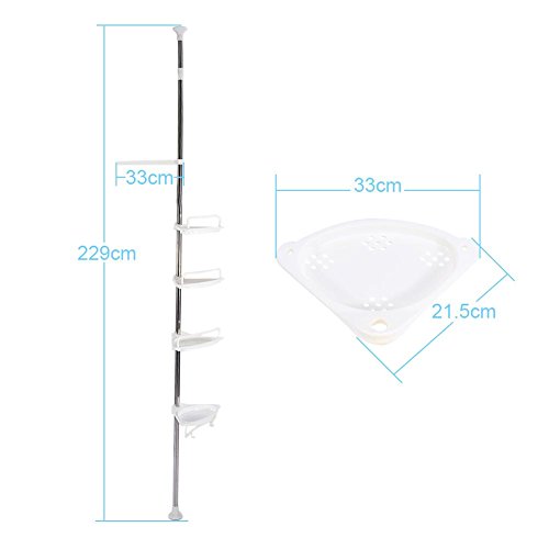 - [التصنيف والتنظيم] مع 4 طبقات، يوفر رف زاوية الحمام التلسكوبي القابل للتعديل مساحة واسعة لتصنيف وتنظيم أساسيات الحمام. حافظ على الشامبو والصابون وأدوات النظافة الأخرى في متناول اليد ويسهل الوصول إليها.