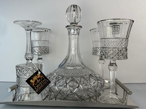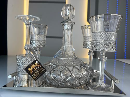 Generic - طقم شربات أسترال فلورا كريستال بوهيمي فضي – 7 قطع – طقم تقديم