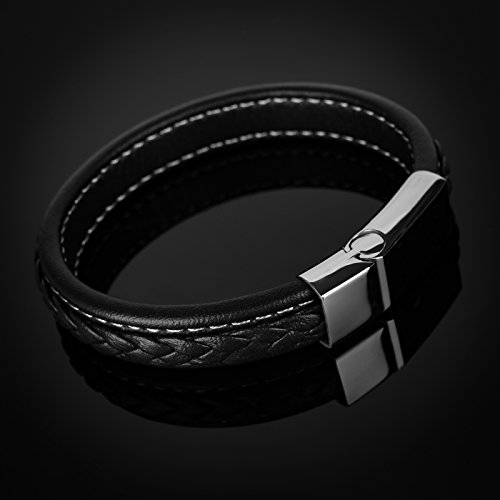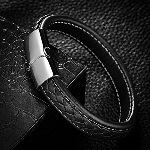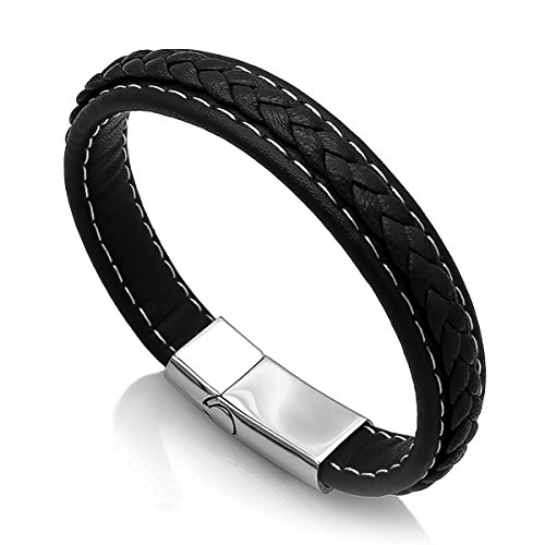 Autiga - سوار جلد انيق للرجال من اوتيجا عريض مع البقر وسطح مضفر 19.5 سم