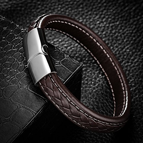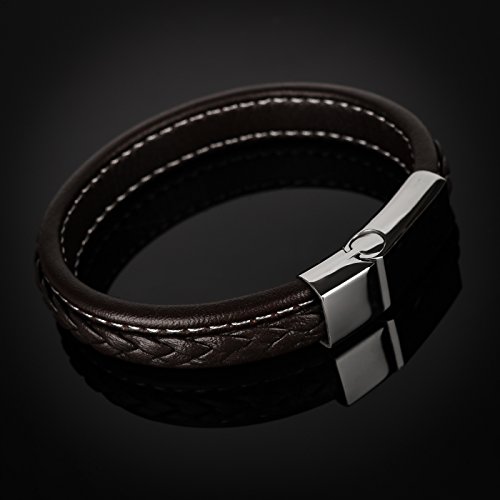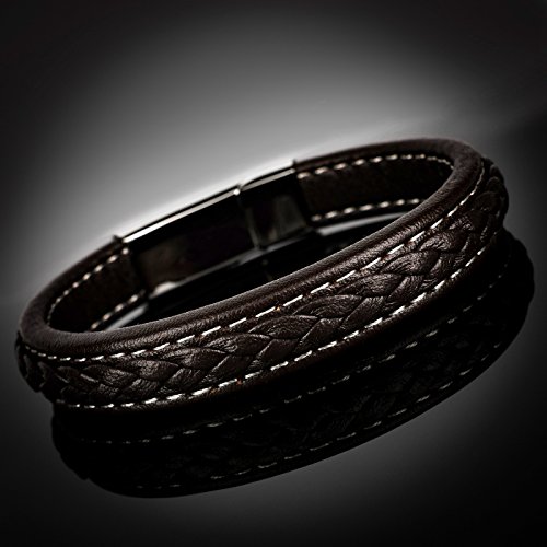 Autiga - سوار انيق وعريض مصنوع من جلد البقر بسطح مضفر للرجال اوتيجا بدون حجر