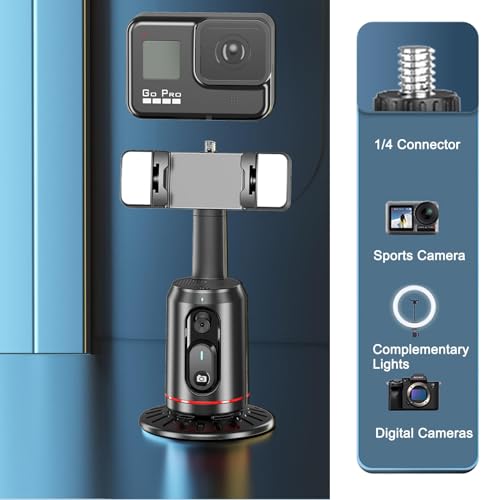 - 【واجهة صامولة قياسية 1/4 انش】يأتي الحامل ثلاثي القوائم لتتبع الوجه التلقائي مع سن لولبي قياسي 1/4 انش في الأسفل، والذي يمكن تثبيته على حامل ثلاثي القوائم وضبط الزاوية والارتفاع. يمتد حامل الهاتف المرفق إلى عرض 2-4 انش لحمل أي حجم هاتف بأمان.