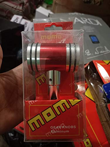AUTO MT - غطاء لعصا الفتيس مومو بلمسة نهائية حمراء من الألومنيوم مع مقبض رياضي للسيارة العالمية من اوتو ام تي