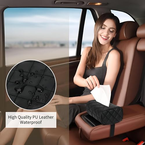 Generic - حامل مناديل للسيارة- حامل علبة مناديل من الجلد، حل عملي وأنيق للحفاظ على السيارة منظمة ونظيفة