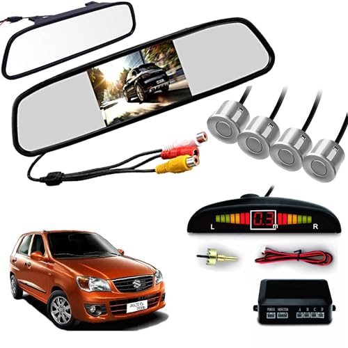 Auto Pearl - نظام فيديو لمراية الصالون تي اف تي ال سي دي مع كاميرا خلفية عالية الدقة HD وقطر 16.5 ملم، مزود بأربعة حساسات ركنة فضية من اوتو بيرل، 11 سم