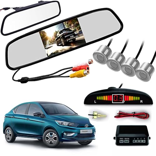 Auto Pearl - نظام فيديو ركن السيارة بشاشة تي اف تي ال سي دي مقاس 4.3 بوصة وكاميرا خلفية عالية الدقة HD مقاس 16.5 ملم و4 مستشعرات ركن سيارة بلون فضي موديل EV-2021 من اوتو بيرل