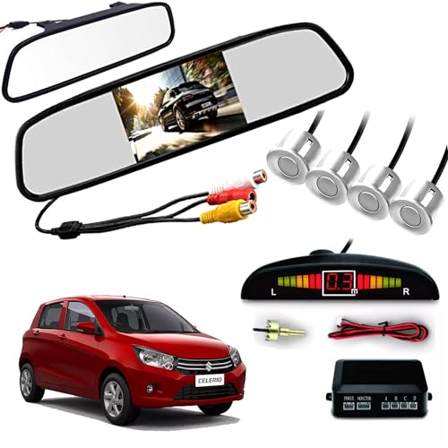 Auto Pearl - نظام فيديو لمراية الرؤية الخلفية تي اف تي ال سي دي مقاس 4.3 بوصة مع كاميرا HD 16.5 ملم و4 مستشعرات وقوف سيارات بيضاء متوافقة مع سيليريو LXI 2014 وما بعده من اوتو بيرل