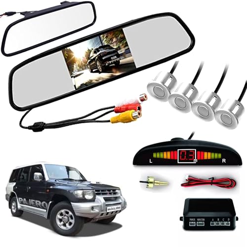 Auto Pearl - نظام فيديو ركن السيارة لمراية صالون الرؤية الخلفية تي اف تي ال سي دي 4.3 بوصة من اوتو بيرل مع كاميرا HD عالية الدقة 16.5 ملم للرجوع للخلف و4 مستشعرات ركن فضية