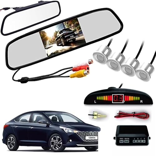 Auto Pearl - نظام فيديو لمراية صالون السيارة تي اف تي ال سي دي مقاس 4.3 بوصة مع 16.5 ملم لكاميرا HD العكسية و4 مستشعرات ركن السيارات من اوتو بيرل، أبيض